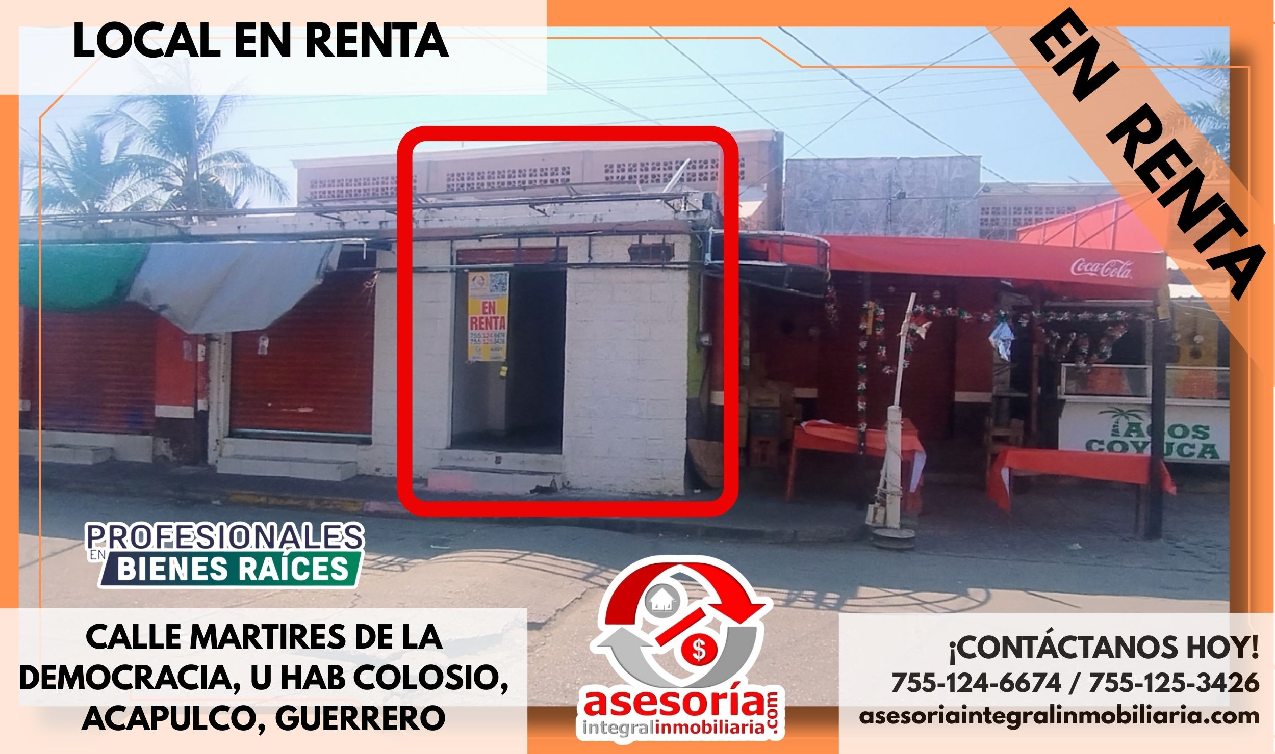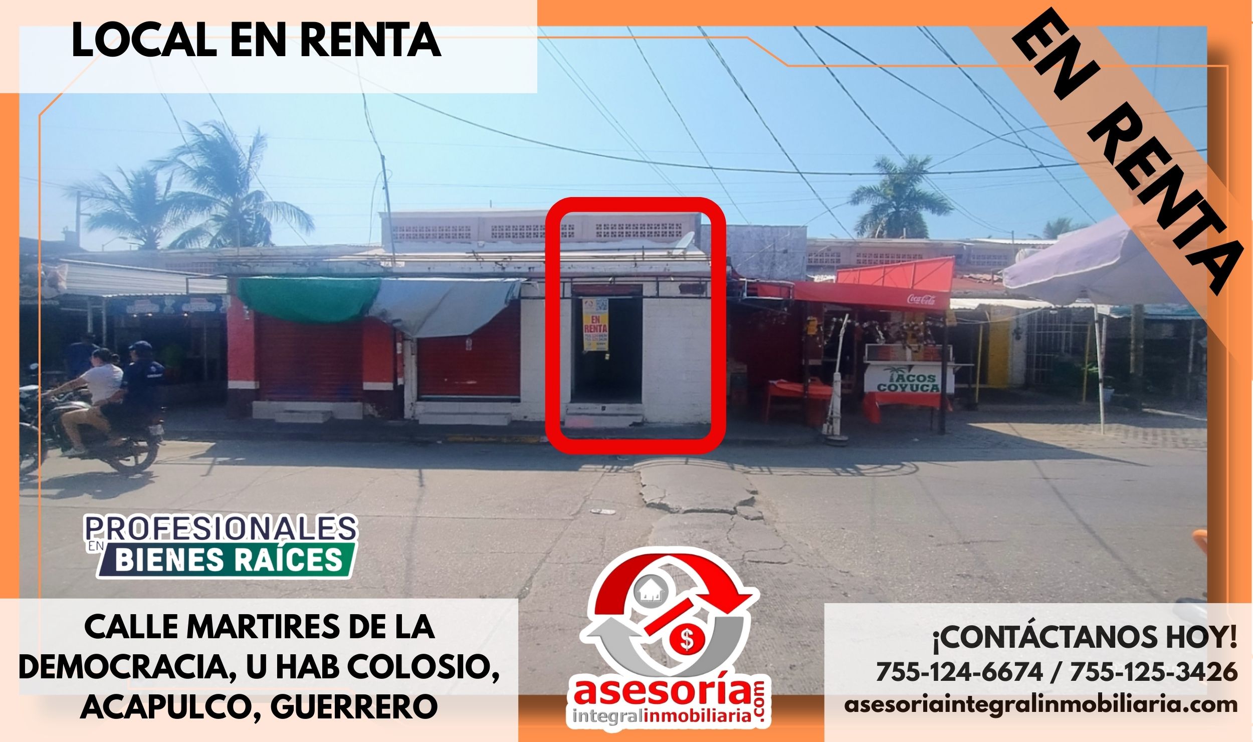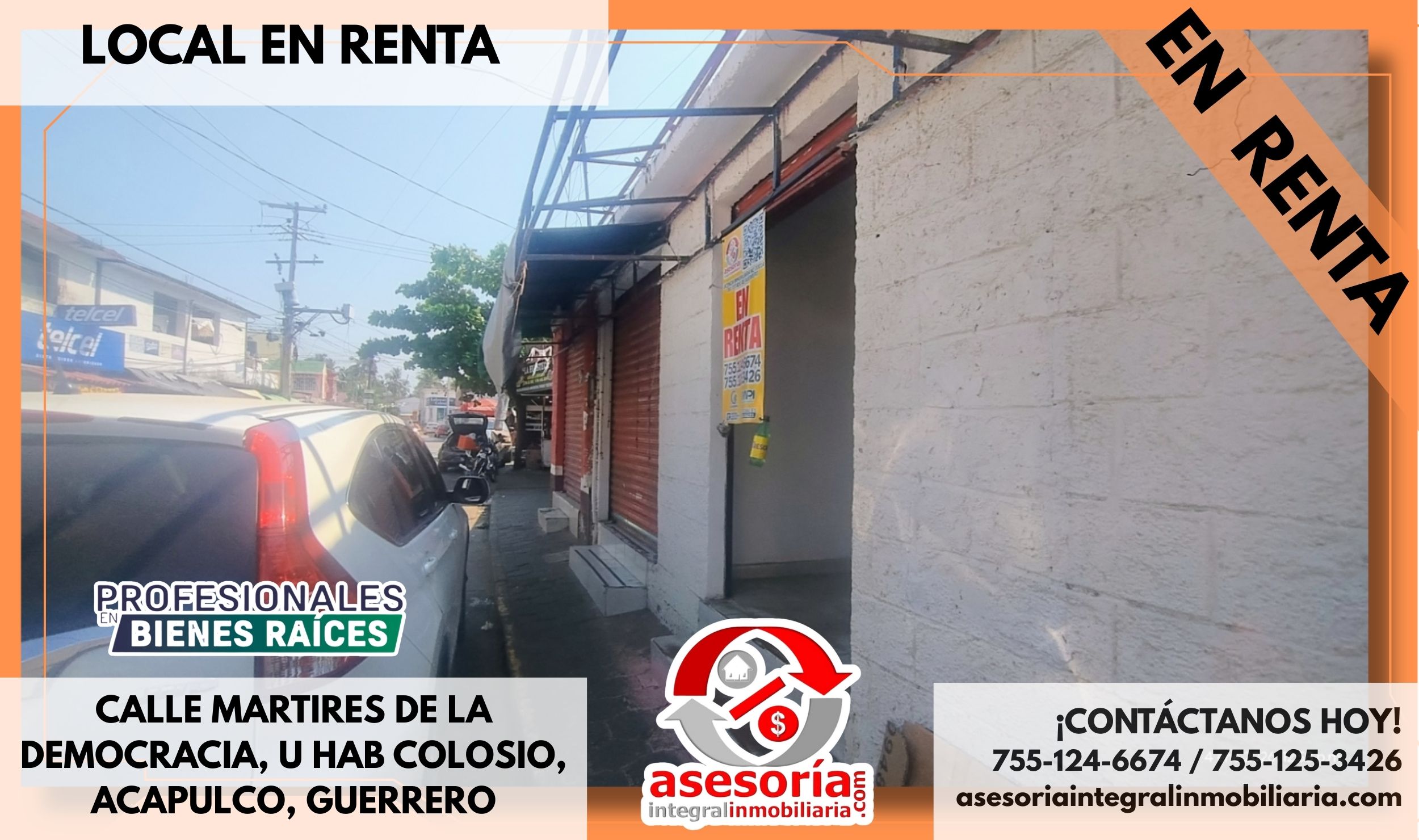 ¡Encuéntralo! Este Local en renta mensual ubicado en la calle Mártires de la Democracia, Unidad Habitacional Luis Donaldo Colosio te ofrece todo lo que necesitas para tu negocio. A solo 110 metros del monumento de Luis Donaldo Colosio, dentro del área comercial (mercado) de la Zona de la Unidad Habitacional.