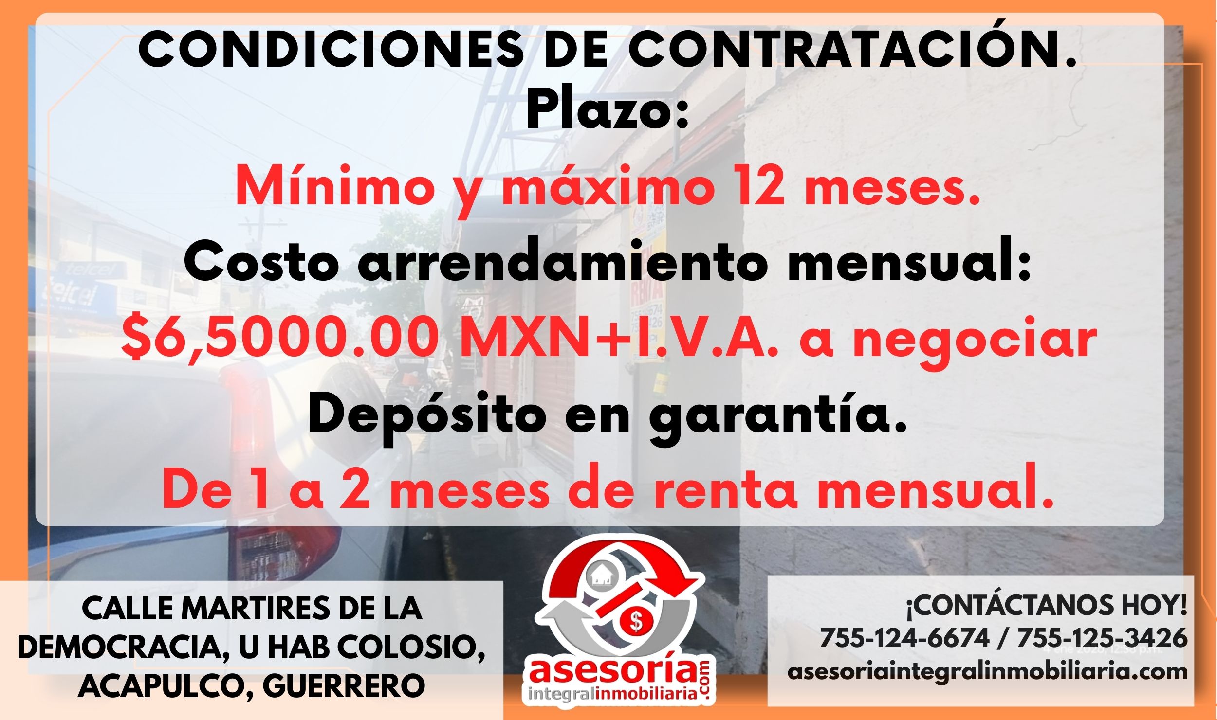 · Renta mensual por adelantado: $6,500.00 MXN + IVA (negociable).
